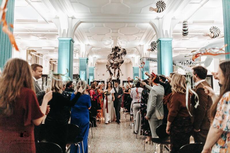 If you're having confetti, decide with your photographer where and when you want it to be thrown. Either the celebrant or photographer will tell your guests what to do, where and when. Sometimes confetti is thrown as the couple walk down the aisle, but sometimes it's done at another time and place. Your celebrant should guide you into the correct position for your exit and talk to you about what's going to happen next.